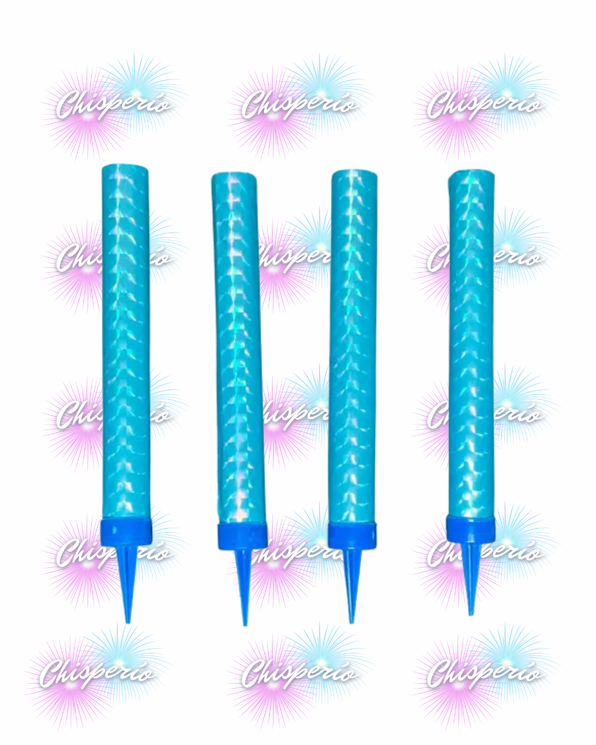 Velas Bengalas Llama Azul Feliz Cumpleaños X 4 Unidades.